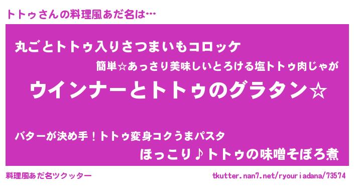 | 女子向けラノベタイトル風あだ名 | 『トトゥ伯爵の花嫁』『トトゥ恋絵巻』 |