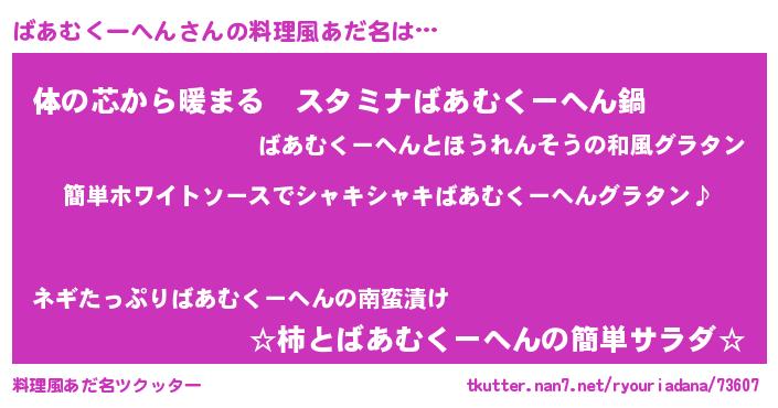 | 女子向けラノベタイトル風あだ名 | 『ばあむくーへん様がみてる』 |