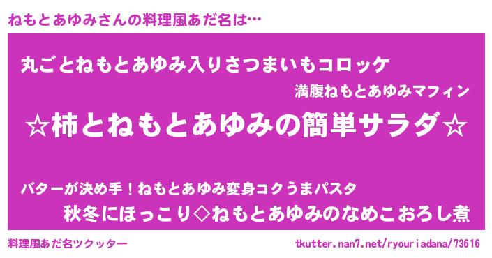 | 意味不明あだ名 | 『住所不定無職ねもとあゆみ(95歳)』 |