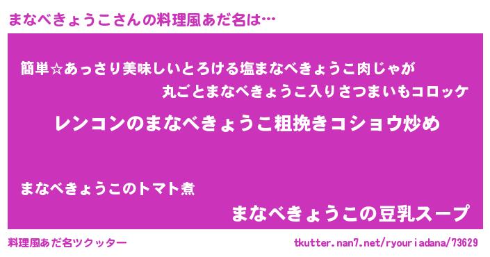 | 意味不明あだ名 | 『自称まなべきょうこ』 |