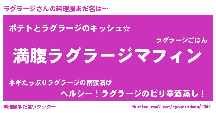 | 意味不明あだ名 | 『永久保存ラグラージ』『自称ラグラージ』 |