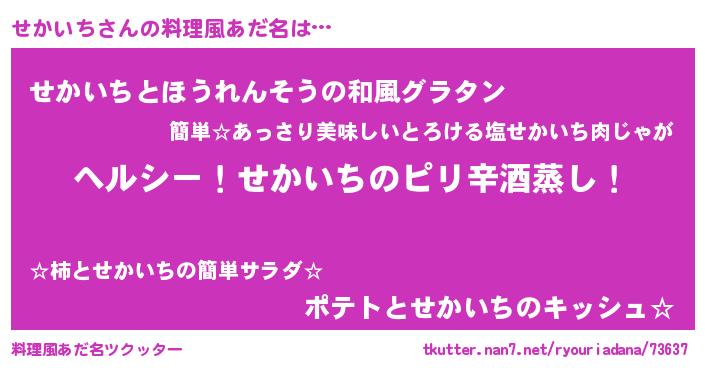| 男性向けラノベタイトル風あだ名 | 『Re:せかいちから始める異世界生活』 |