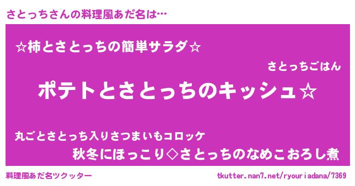 | 女子向けラノベタイトル風あだ名 | 『さとっちの卵を拾いまして』 |