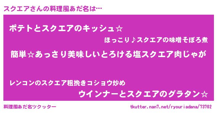 | ヘコむあだ名 | 『スクエア(遠い目)』『スク太郎』 |