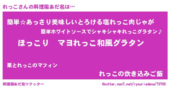 | 男性向けラノベタイトル風あだ名 | 『この素晴らしい世界にれっこを!』 |