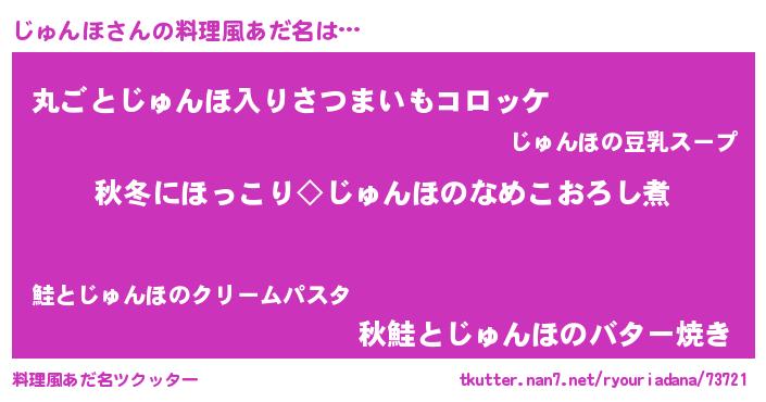 | 男性向けラノベタイトル風あだ名 | 『じゅんほに滅ぼされるだけの簡単なお仕事です』 |