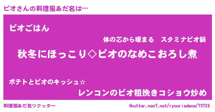| 意味不明あだ名 | 『ニラ科ピオ属』『自称ピオ』 |