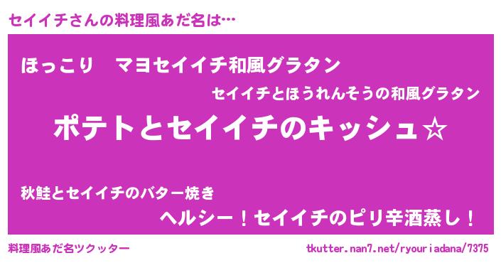 | 男性向けラノベタイトル風あだ名 | 『セイイチの嫁は女の子じゃないと思った?』 |