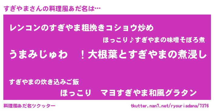 | 胡散臭い通販商品みたいなあだ名 | 『運命の人と巡り会える高級そうな皿…その名も「すぎやま」』 |