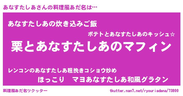 | 胡散臭い通販商品みたいなあだ名 | 『世界中を虜にした世界で10本だけ現存している希少なブランデー…その名も「あなすたしあ」』 |