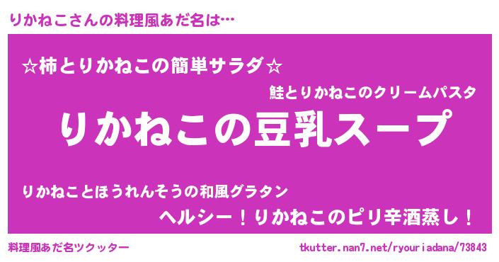| 胡散臭い通販商品みたいなあだ名 | 『信頼と実績のサプリメント…その名も「りかねこ」』 |