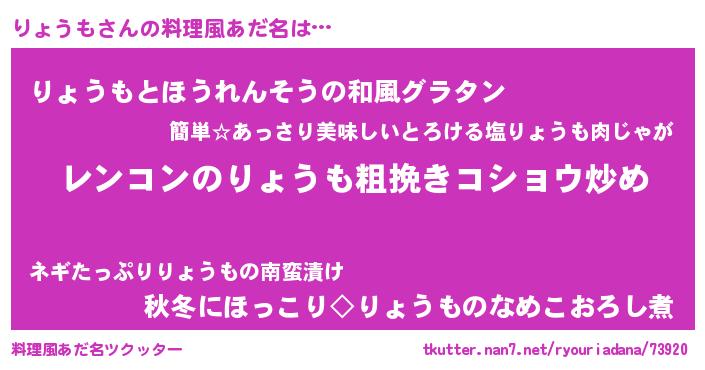 | ヘコむあだ名 | 『りょうも(爆)』『りょふぇ~』 |