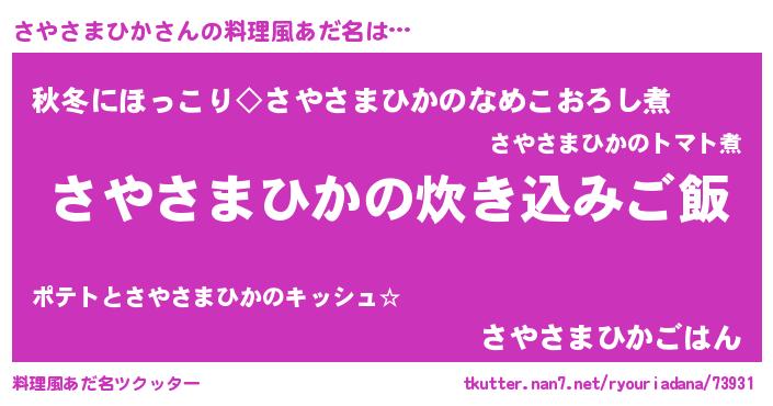 | ヘコむあだ名 | 『さやお』『さやにー』『なまこ酢』 |
