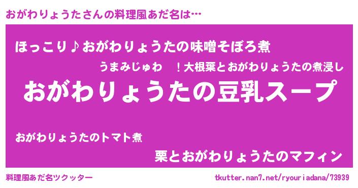 | 意味不明あだ名 | 『とにかく怪しいおがわりょうた』 |
