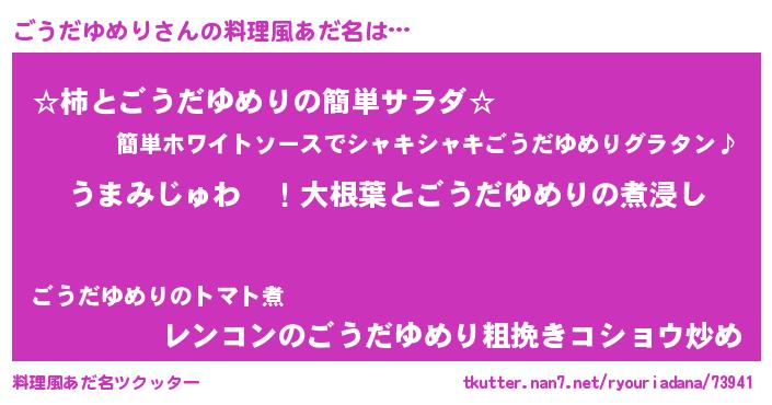 | 意味不明あだ名 | 『ごうだゆめりフォーエバー』 |