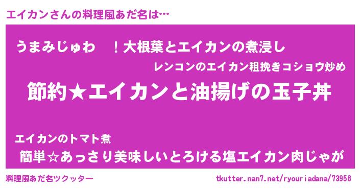 | 意味不明あだ名 | 『ペロリンエイカン』『永久保存エイカン』 |