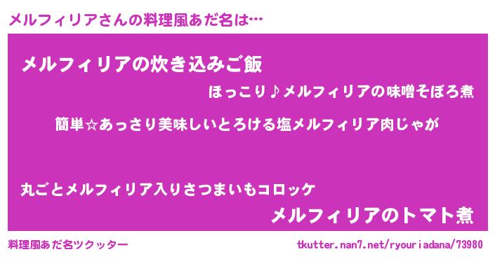 | ヘコむあだ名 | 『メルフィリア(笑)』『メルにー』 |