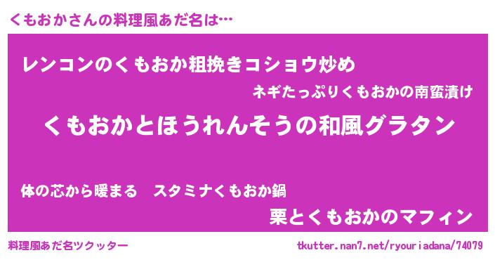 意味不明あだ名 | 『ヨモギ科くもおか属』『自称くもおか』 |