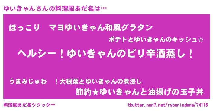 | 男性向けラノベタイトル風あだ名 | 『Re:ゆいきゃんから始める異世界生活』 |
