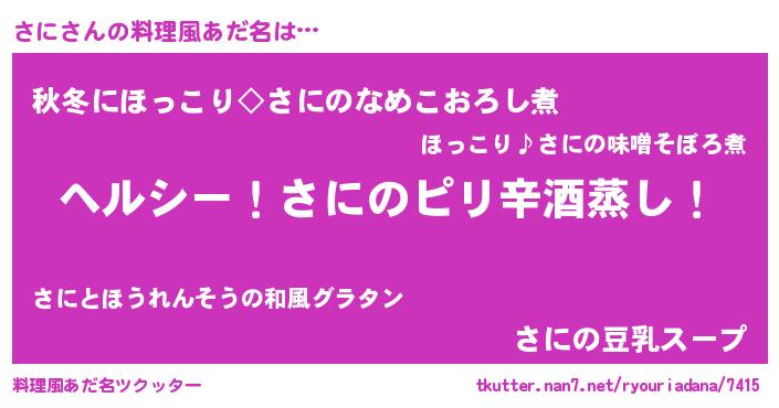 | ヘコむあだ名 | 『さにっ子』『さにもー』『酢こんぶ』 |