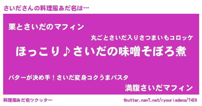 | 意味不明あだ名 | 『ペロリンさいだ』『永久保存さいだ』 |