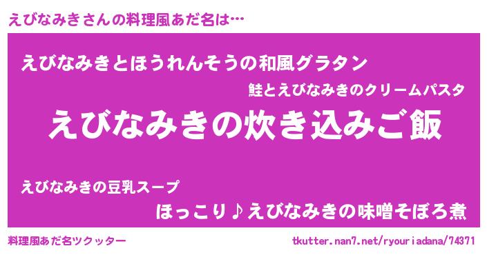 | 意味不明あだ名 | 『なめこ科えびなみき属』 |