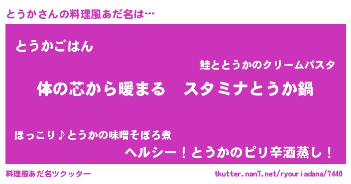 | 意味不明あだ名 | 『とうかフォーエバー』『自称とうか』 |