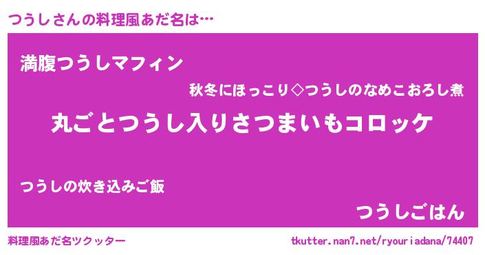 | ヘコむあだ名 | 『つうし(笑)』『つうふぇ~』 |