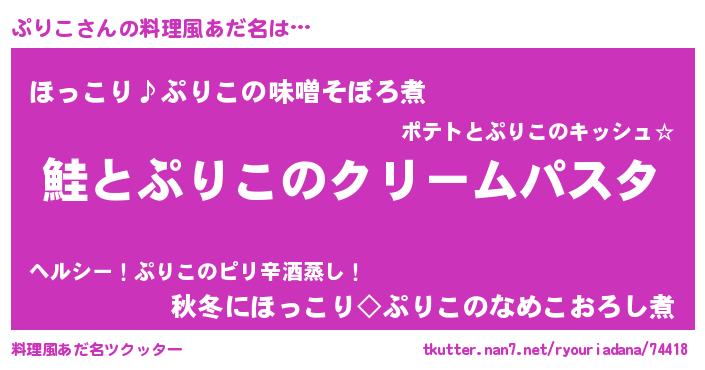 | 女子向けラノベタイトル風あだ名 | 『死神ぷりこの再婚』『闇のぷりこ』 |