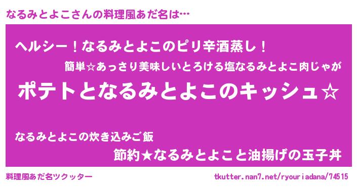 | 男性向けラノベタイトル風あだ名 | 『なるみとよこの嫁は女の子じゃないと思った?』 |
