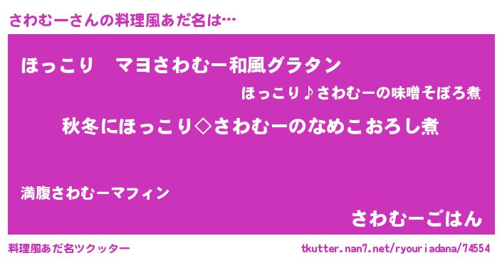 | 意味不明あだ名 | 『住所不定無職さわむー(93歳)』 |