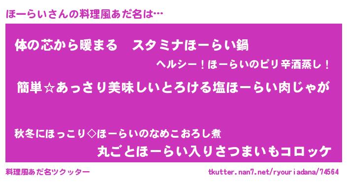 | 意味不明あだ名 | 『永久保存ほーらい』『自称ほーらい』 |
