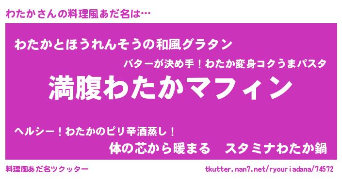 | ヘコむあだ名 | 『わたか(笑)』『なまこ酢』 |