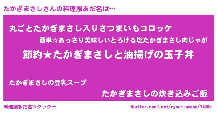 | ヘコむあだ名 | 『たかっふぃ~』『たかぎまさし(苦笑)』 |