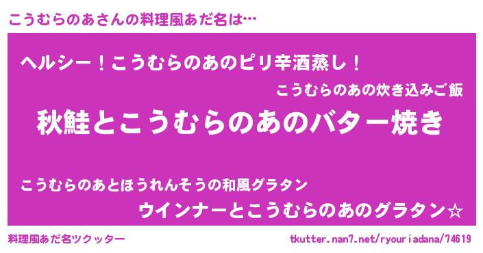 | ヘコむあだ名 | 『こうむらのあ(笑)』『酢こんぶ』 |