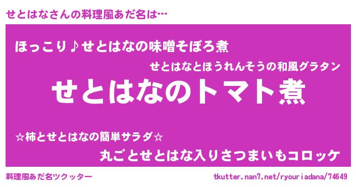 | ヒーロー風カッコイイあだ名 | 『正義の使者せとはな』『仮面セトダー』 |