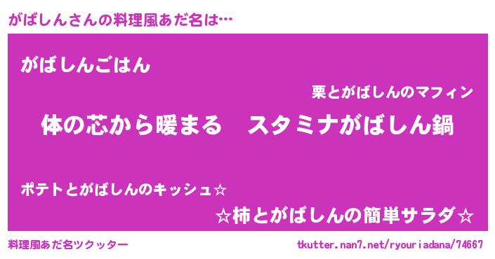 | ヒーロー風カッコイイあだ名 | 『ウルトラがばしんマン』『魔戒騎士ガバ』 |