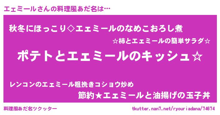 | 女子向けラノベタイトル風あだ名 | 『エェミールの卵を拾いまして』 |