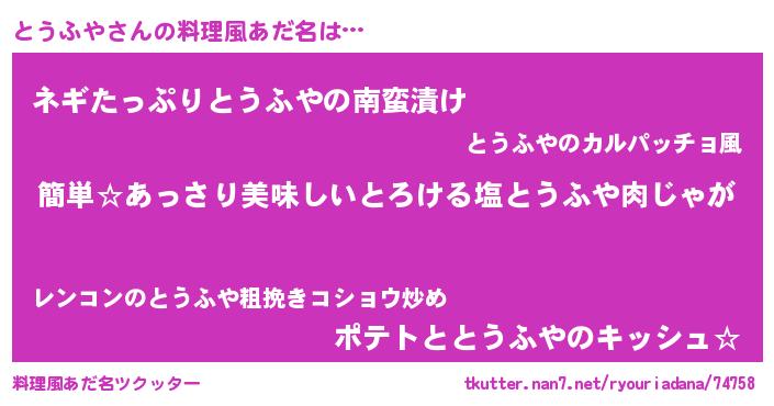 | ヘコむあだ名 | 『とうふや(笑)』『とうもー』 |