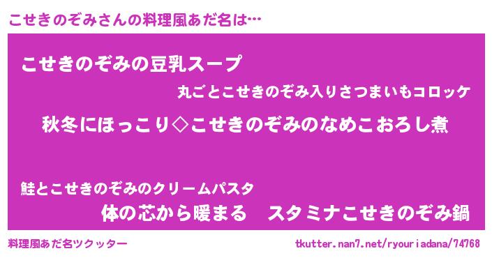 | 胡散臭い通販商品みたいなあだ名 | 『全米が絶賛したサプリメント…その名も「こせきのぞみ」』 |