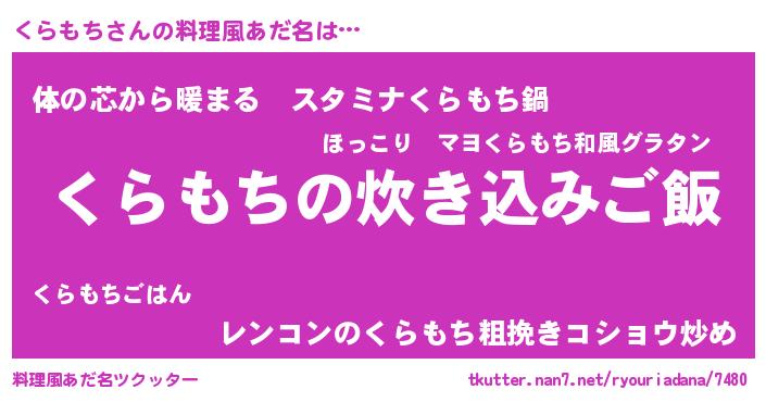 | 意味不明あだ名 | 『くらもちフォーエバー』『自称くらもち』 |