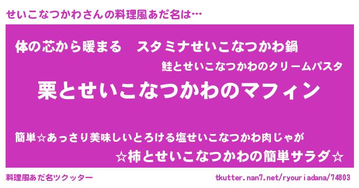 | 意味不明あだ名 | 『せいこなつかわフォーエバー』 |