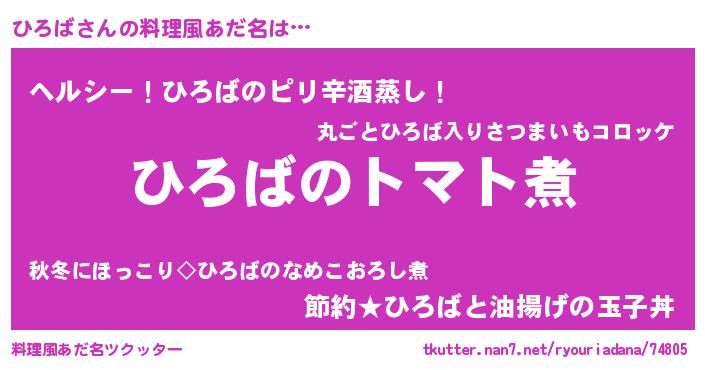 | 女子向けラノベタイトル風あだ名 | 『ひろば夫妻のなれそめ』『闇のひろば』 |