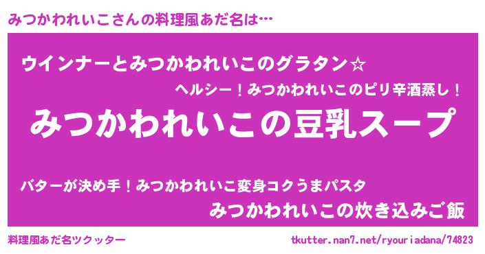 | 胡散臭い通販商品みたいなあだ名 | 『信頼と実績のサプリメント…その名も「みつかわれいこ」』 |