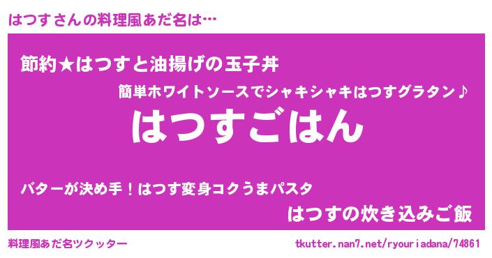 | ヒーロー風カッコイイあだ名 | 『スーパーハツス』『幻影騎士ハツ』 |
