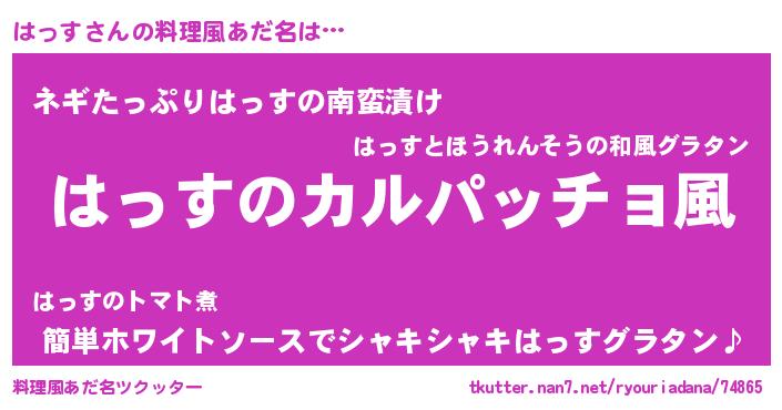| 男性向けラノベタイトル風あだ名 | 『魔弾の王とはっす』 |