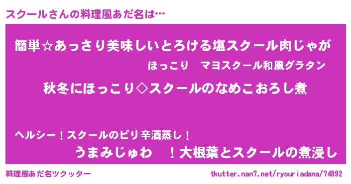 | 意味不明あだ名 | 『永久保存スクール』『自称スクール』 |