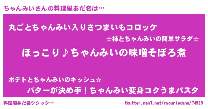 | 胡散臭い通販商品みたいなあだ名 | 『必ず成功するブレスレット…その名も「ちゃんみい」』 |