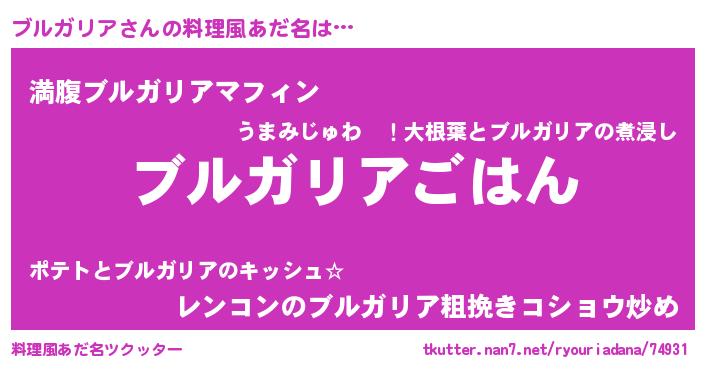 | 男性向けラノベタイトル風あだ名 | 『ブルガリアスレイヤー』 |