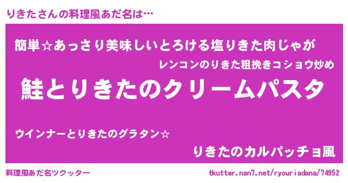 | ヘコむあだ名 | 『りきた(笑)』『酢こんぶ』 |